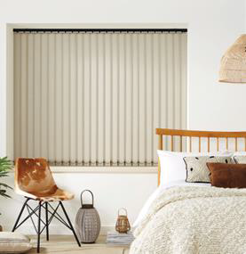 At Shutters ānā Blinds, our vertical blinds are the classic choice for home and office applications and style and affordability come as standard. Unlike alternative horizontal blinds, our vertical shades hang from a head rail in a similar fashion to curtains. This makes them appear more elegant and easier to use. A complete range of materials and treatments, including solar protective backing, are available.Features include chain and pulley controls (and now with wand control for additional child safety), top and face fix brackets, strong metal head rails and a massive choice of fabrics. Our vertical blinds are perfect for (but certainly not limited to) conservatories and larger patio windows to create a modern alternative to traditional curtains.